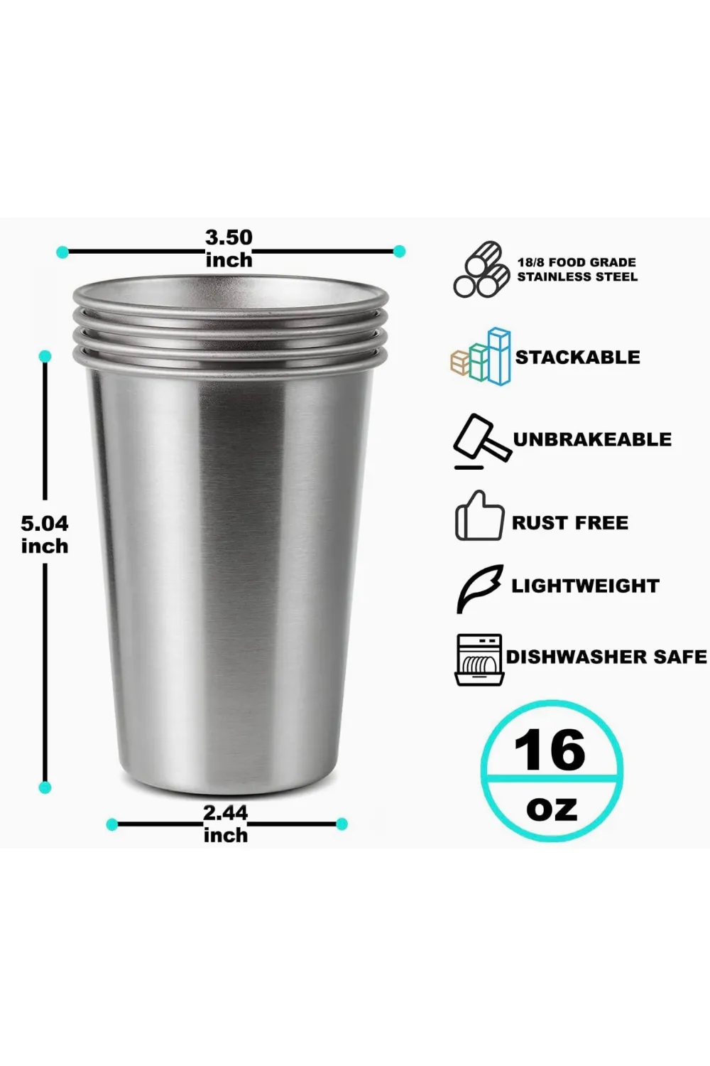* Saklaması kolay, birlikte istiflenebilir, depolama ve yanınızda taşımak için uygundur. Her bardağın kapasitesi 500 ml/16 oz’dur.