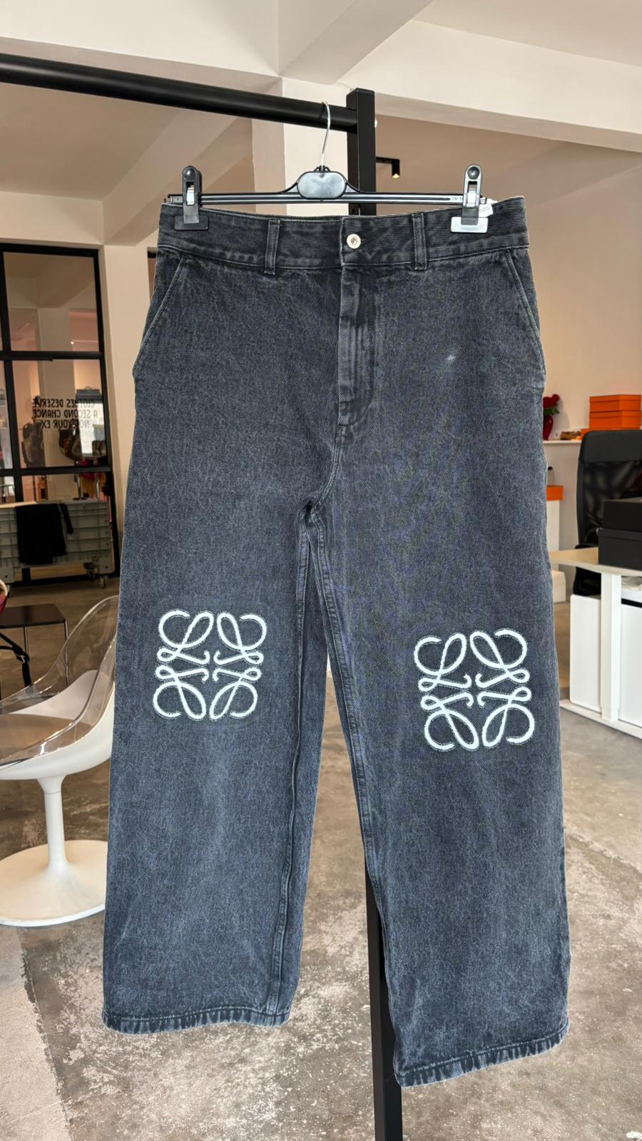 * Loewe Anagram Siyah Wide Leg Jean Pantolon