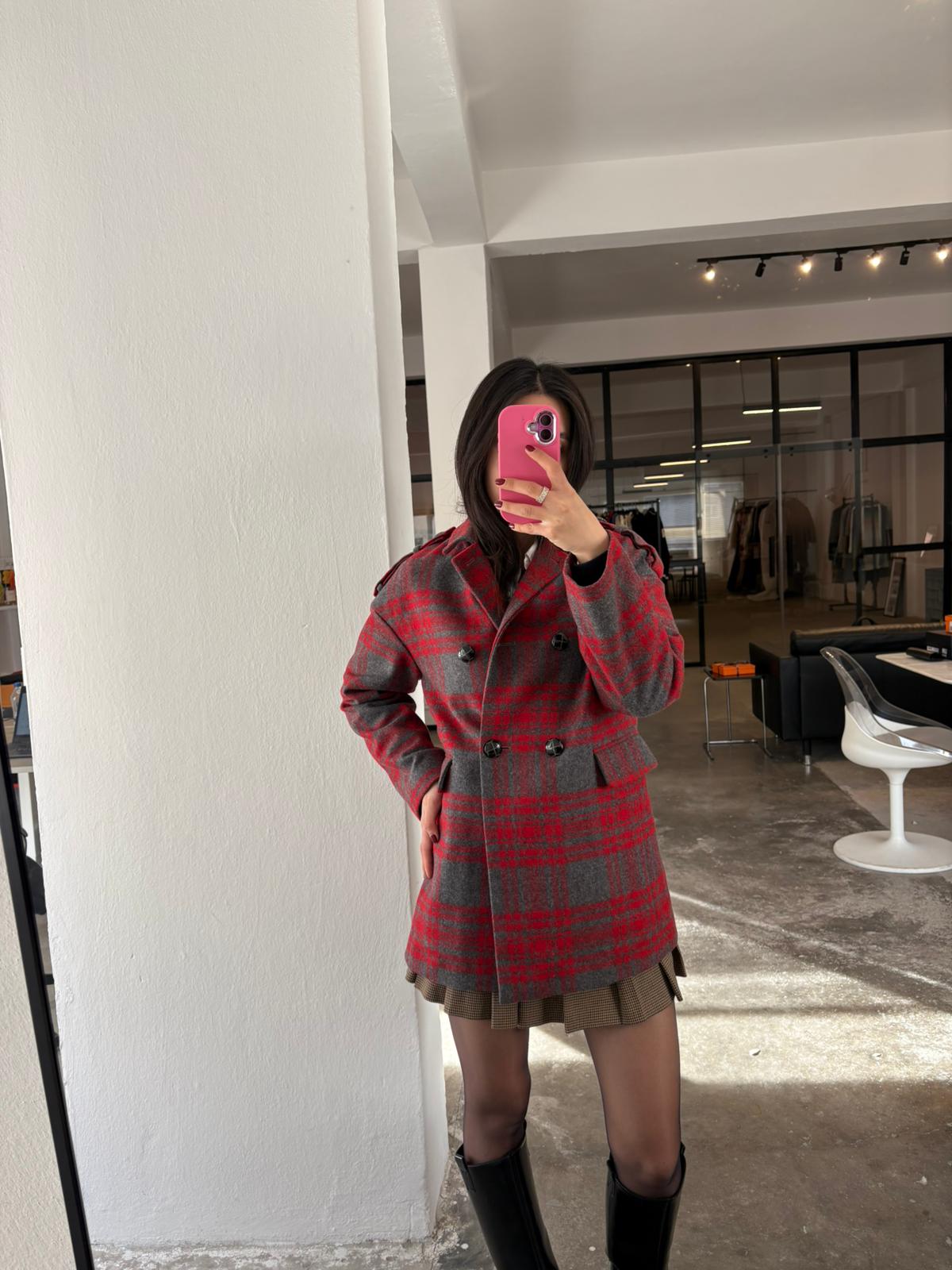 Ekose Desenli Yün Çocuk Ceketi