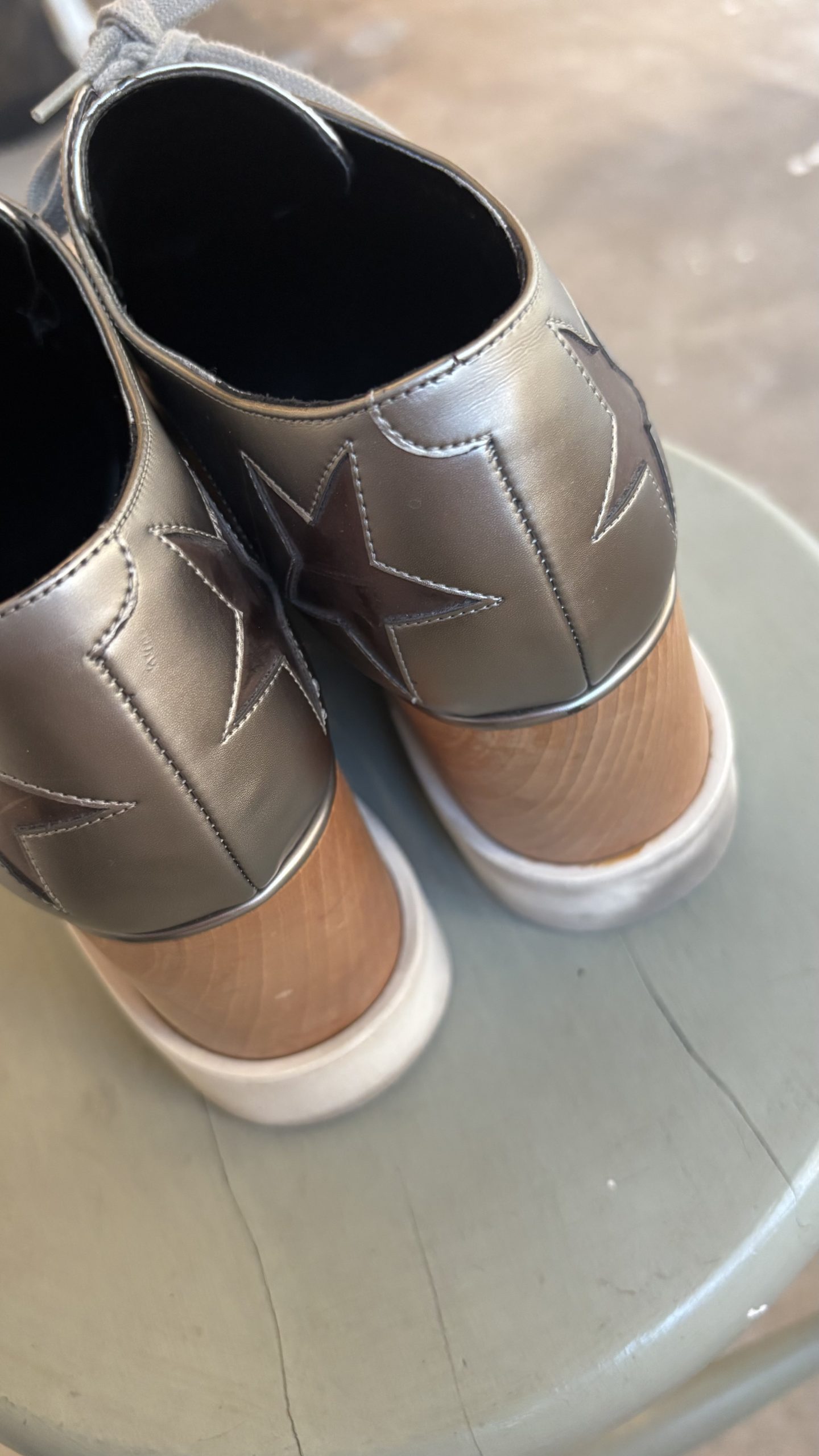 Ürünler küçük aşınma belirtileri gösteriyor. Ayakkabılarda tabanlarda, tabanlıklarda ve topuklarda hafif sürtünme gibi aşınmalar görülebilir. El çantaları ve aksesuarlarda hafif aşınmış köşeler, hafif çizikler ve iç kısımlarda aşınma olabilir.