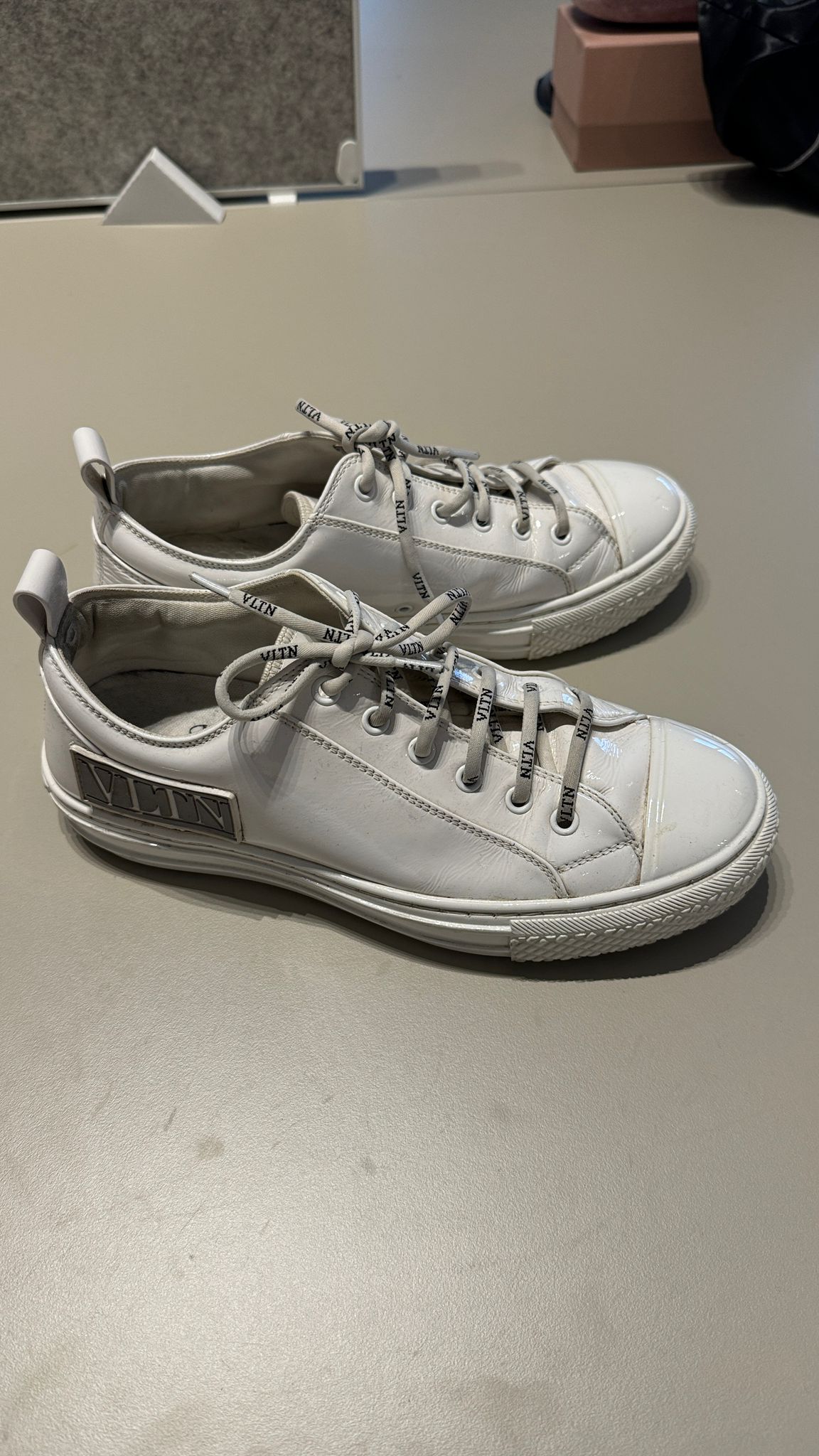 Ürünler küçük aşınma belirtileri gösteriyor. Ayakkabılarda tabanlarda, tabanlıklarda ve topuklarda hafif sürtünme gibi aşınmalar görülebilir. El çantaları ve aksesuarlarda hafif aşınmış köşeler, hafif çizikler ve iç kısımlarda aşınma olabilir.