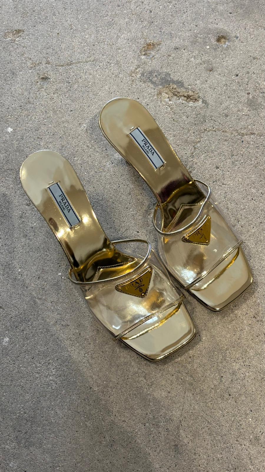 * Prada Golden Heels Topuklu Terlik