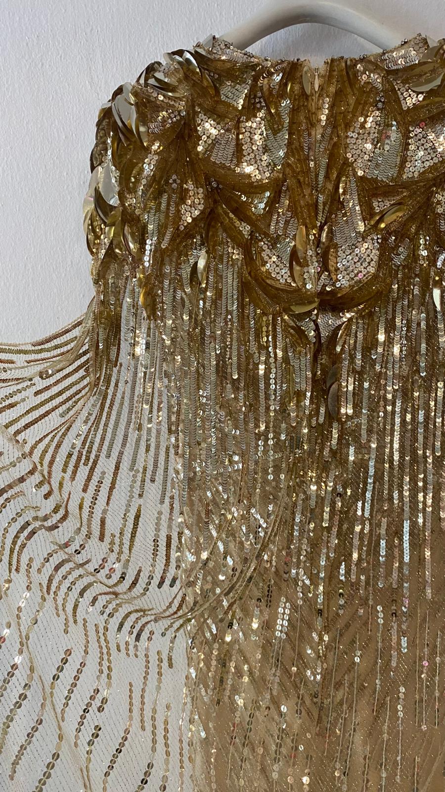 İşlemeli Gold Elbise