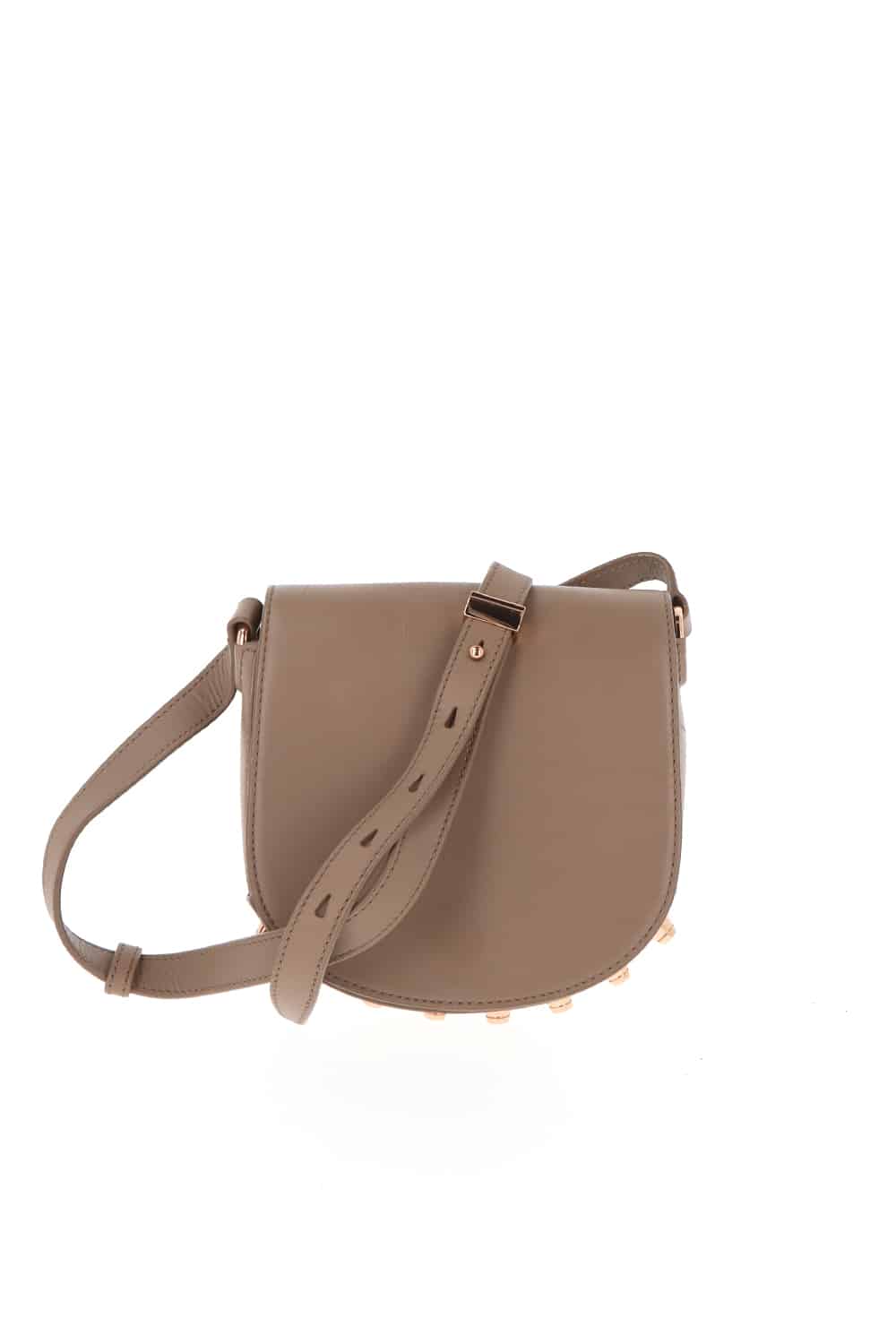 Lia Beige Studded Leather Messenger Omuz Çantası