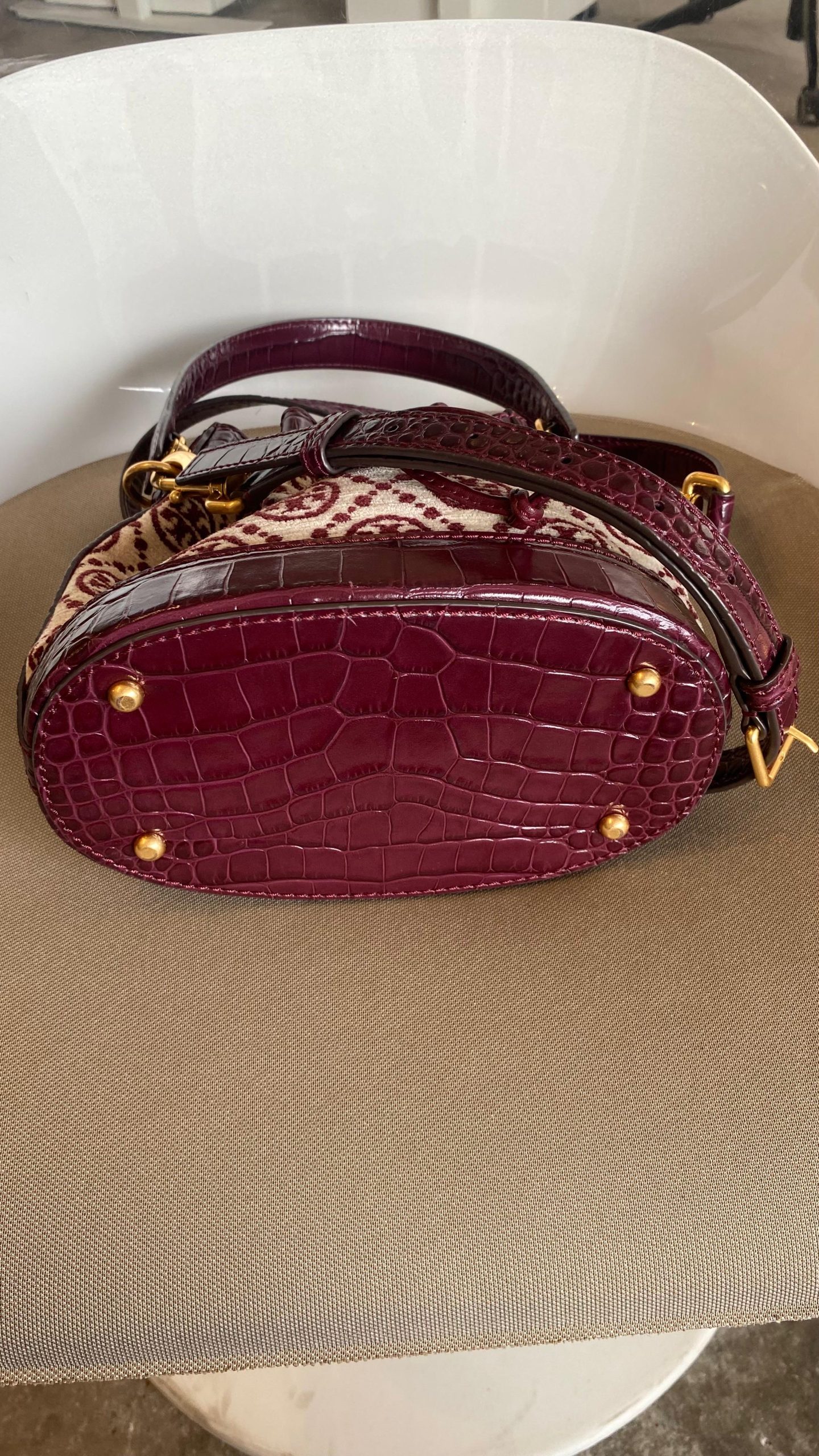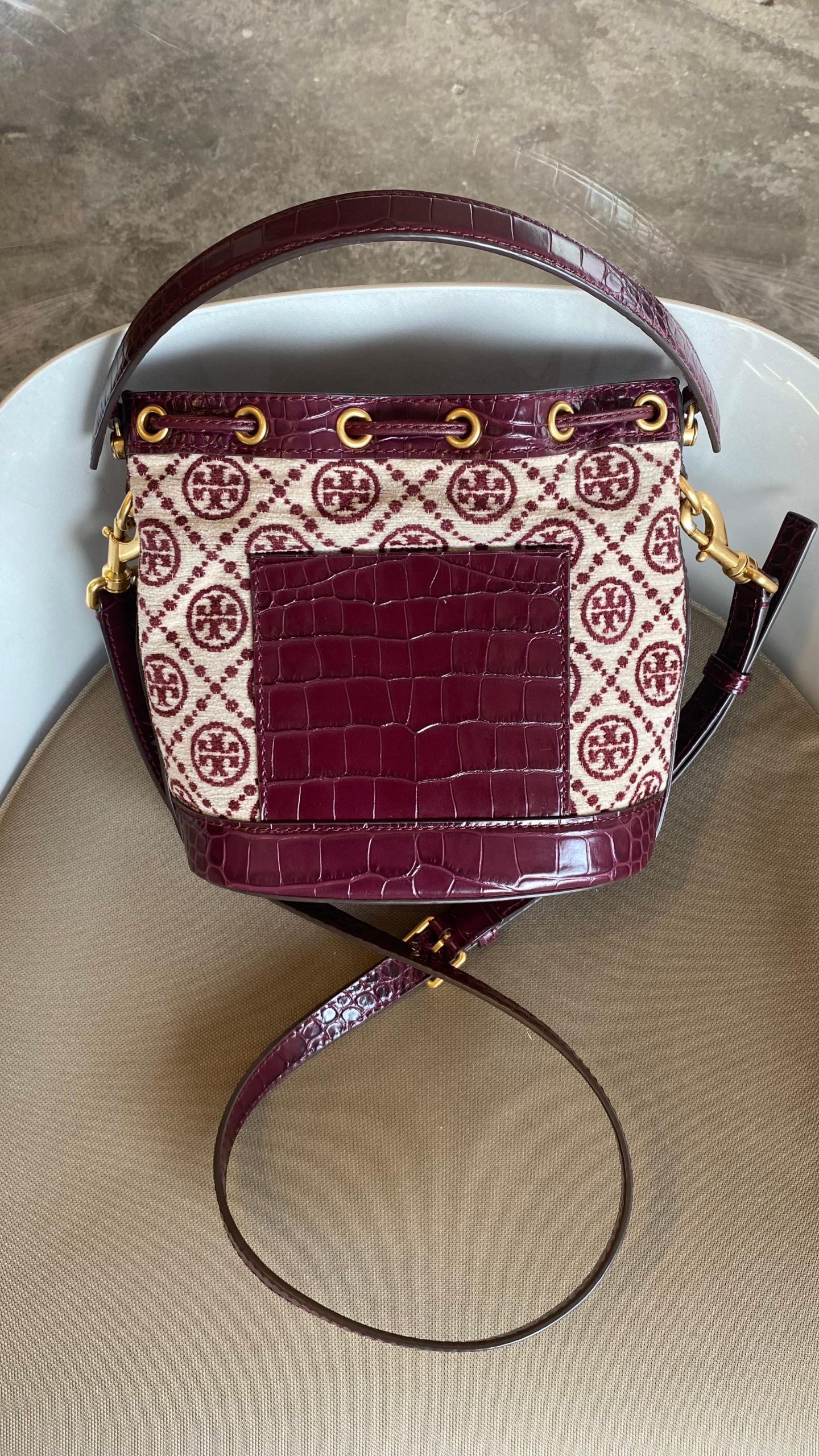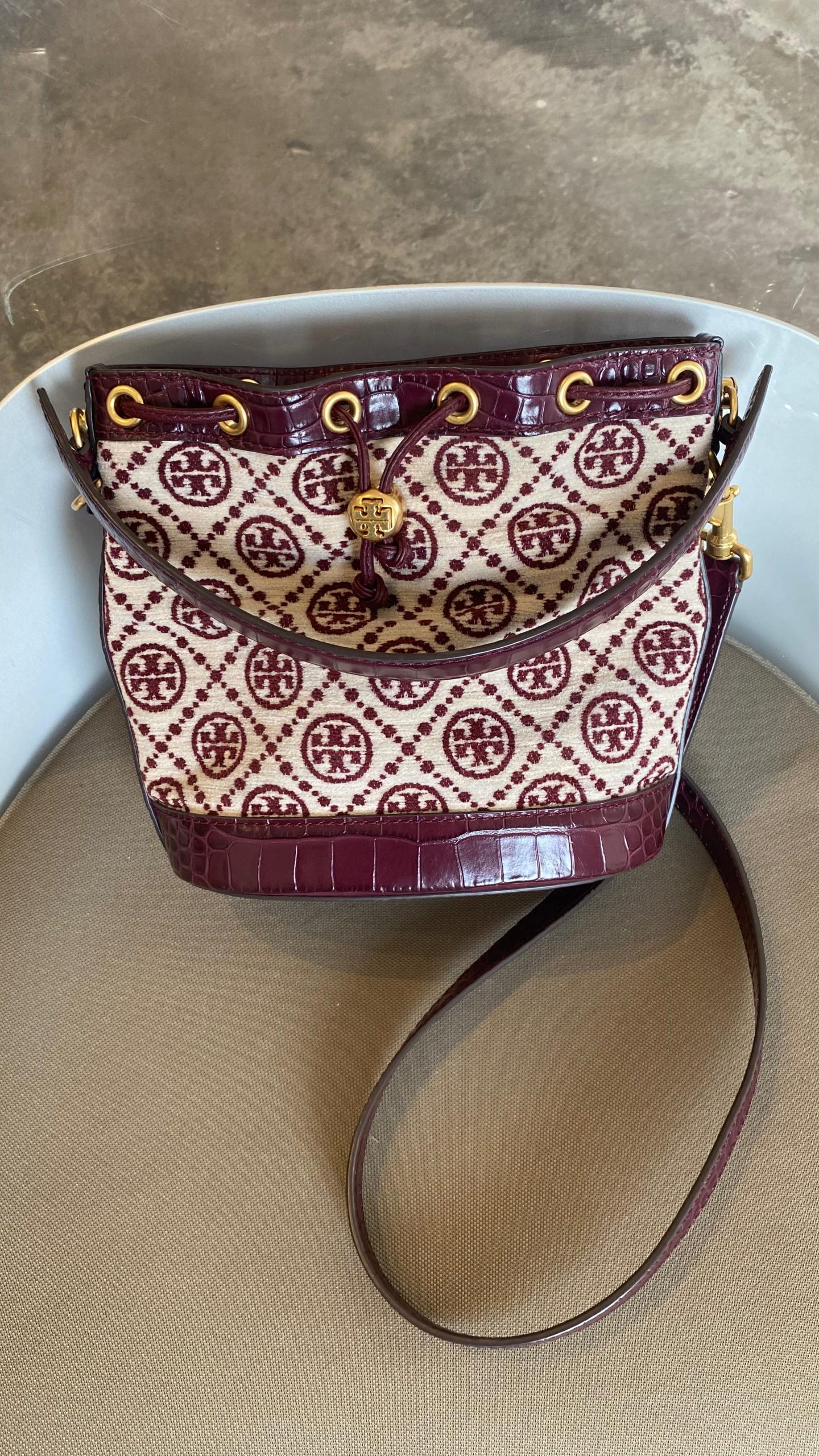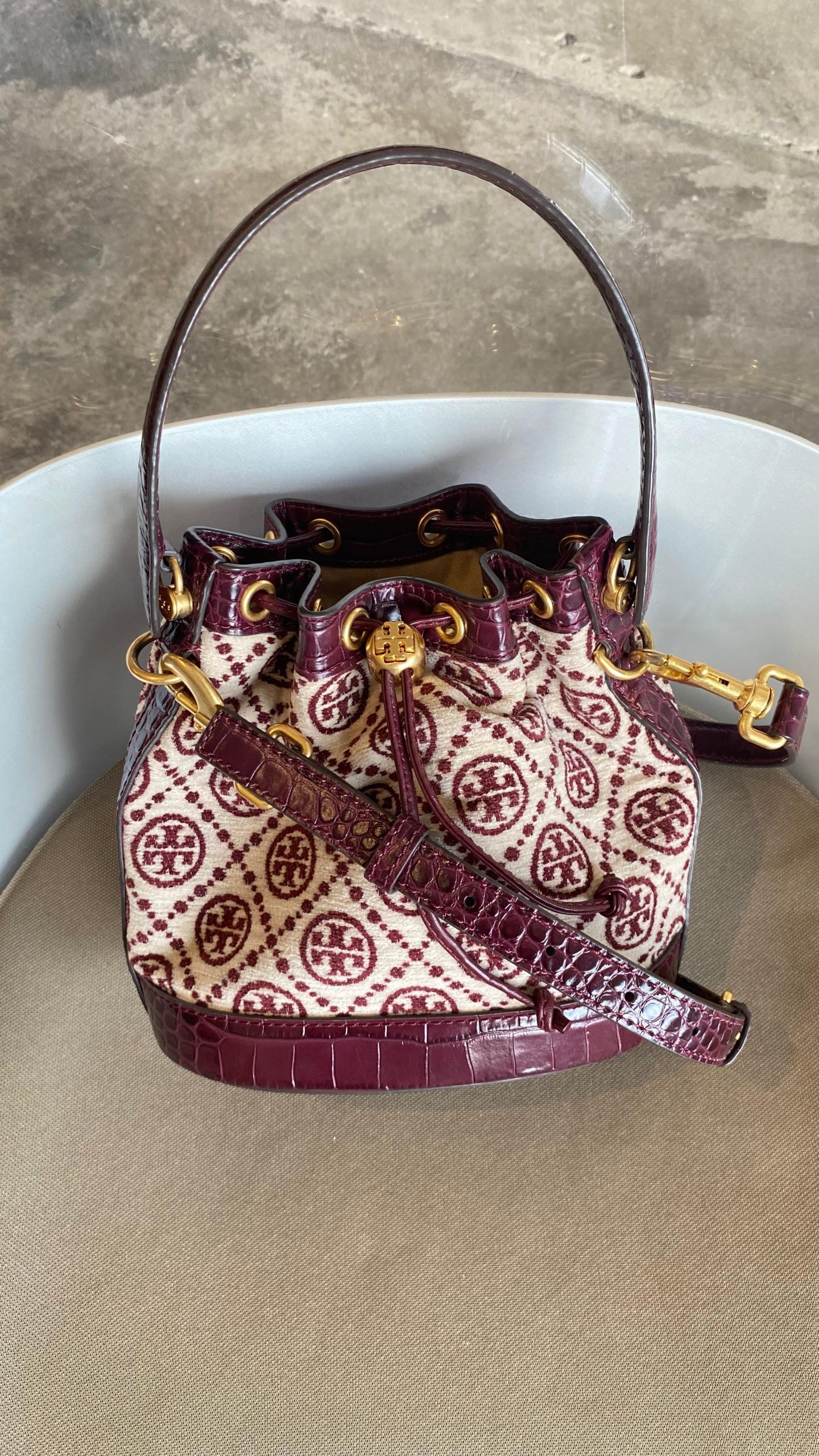 * Tory Burch Monogram Chenille Bucket Omuz Çantası