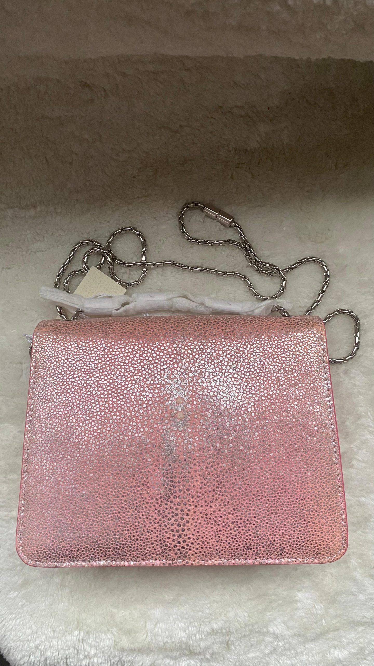 Ürünler küçük aşınma belirtileri gösteriyor. Ayakkabılarda tabanlarda, tabanlıklarda ve topuklarda hafif sürtünme gibi aşınmalar görülebilir. El çantaları ve aksesuarlarda hafif aşınmış köşeler, hafif çizikler ve iç kısımlarda aşınma olabilir.
