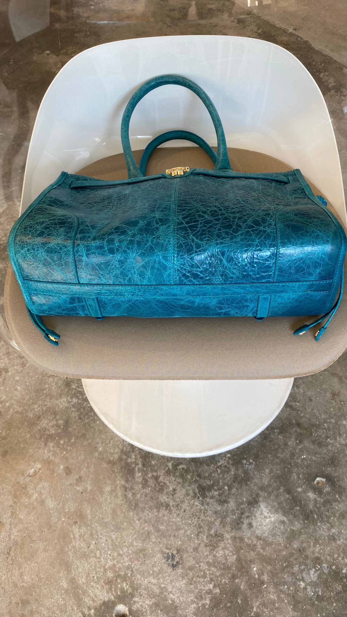 Ürünler küçük aşınma belirtileri gösteriyor. Ayakkabılarda tabanlarda, tabanlıklarda ve topuklarda hafif sürtünme gibi aşınmalar görülebilir. El çantaları ve aksesuarlarda hafif aşınmış köşeler, hafif çizikler ve iç kısımlarda aşınma olabilir.